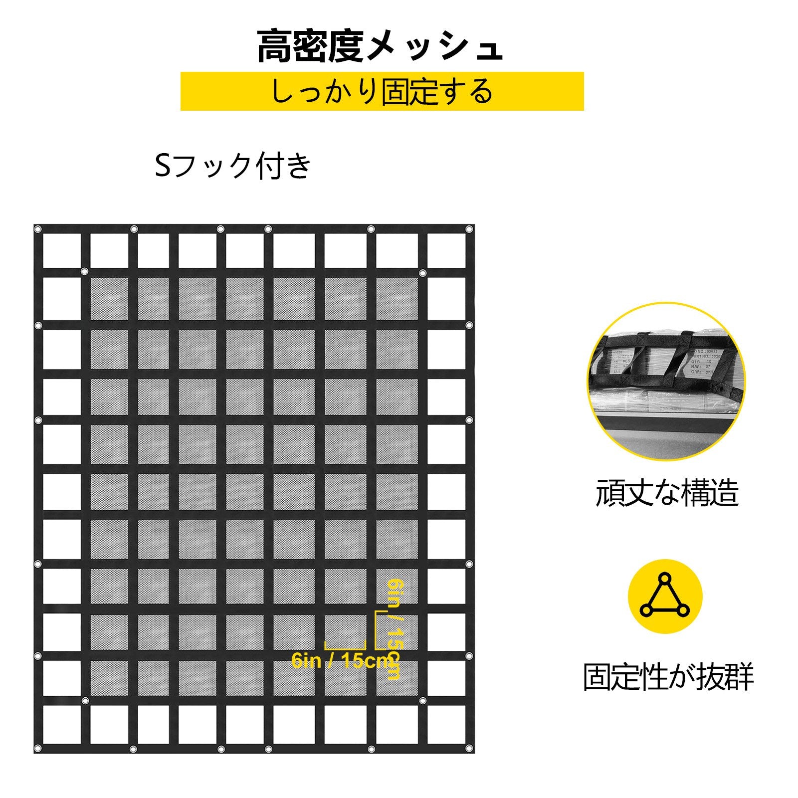 - Slitstark polyester och 8×6,7 fot: Fyrkantig hålstorlek: 6×6 tum/15×15 cm, nätstorlek: 8×6,7 fot/244×205 cm. Lastnätet för pickup-flak är tillverkat av höghållfast polyester och järndetaljer med zinkplatta.