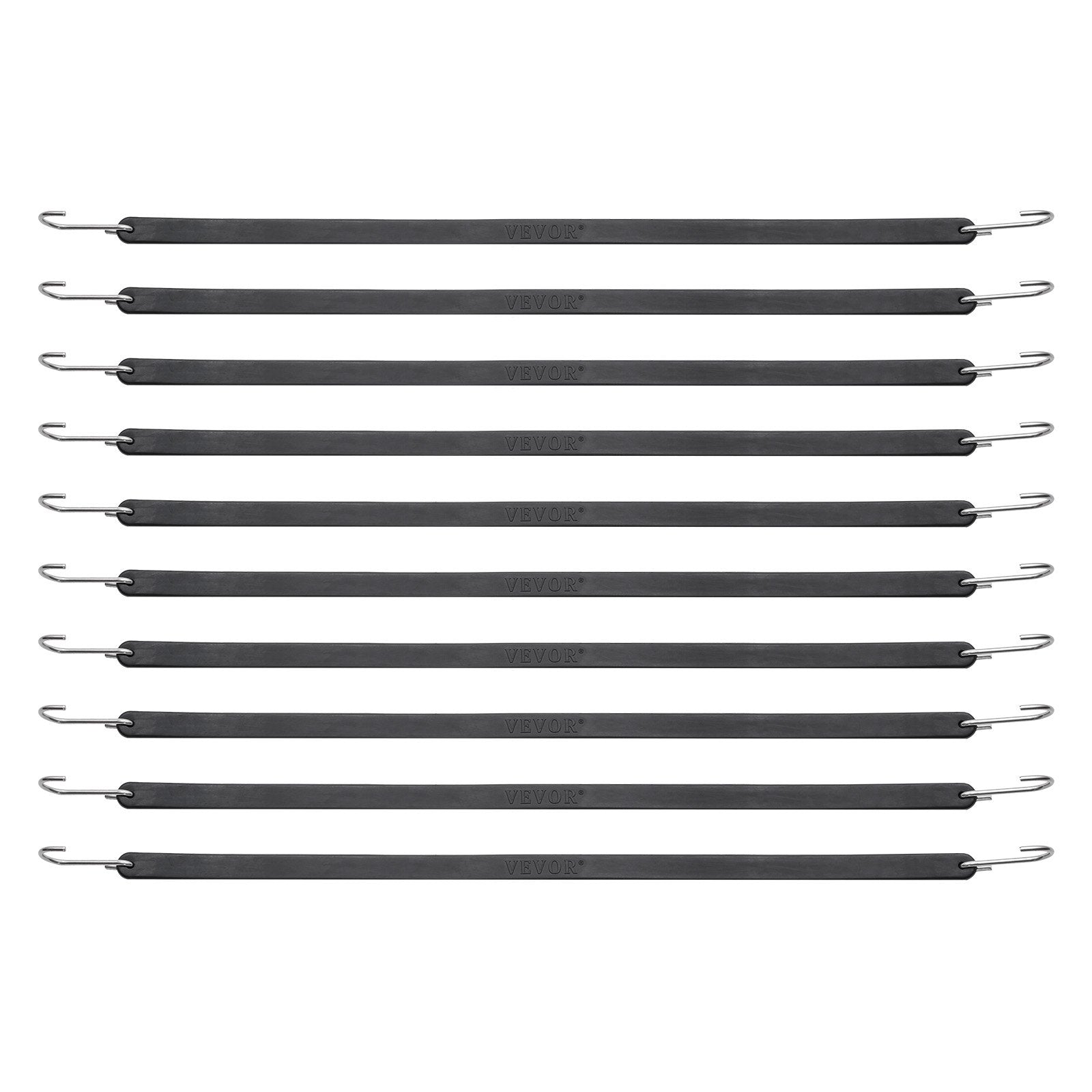 10-delat platt elastiskt rep, 20 mm kraftiga elastiska remmar med stål-S-krokar, 24" elastiskt elastiskt rep för last, presenningar, lastbilar och tält, svart