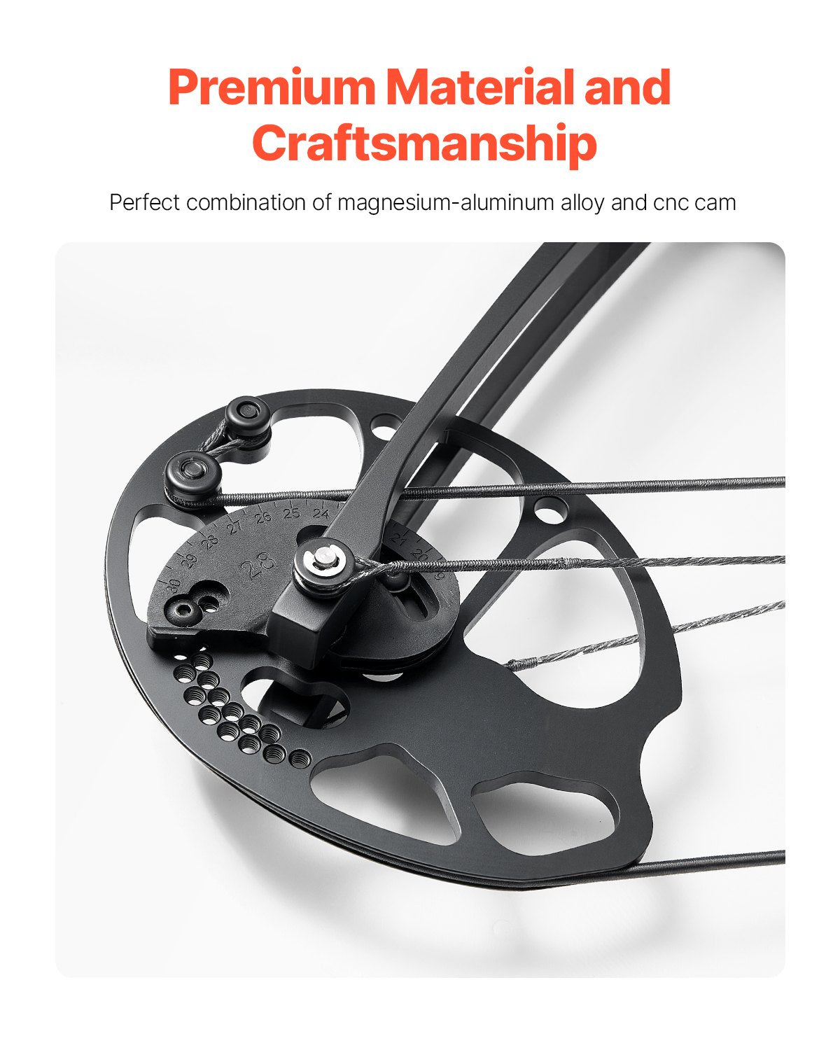 - Premium och hållbart material: Compoundbågspaketet är tillverkat av en kombination av magnesium-aluminiumlegering och CNC-kammaterial, vilket gör det starkt och slitstarkt. Bågen är lätt att dra och fortsätter att prestera utmärkt.