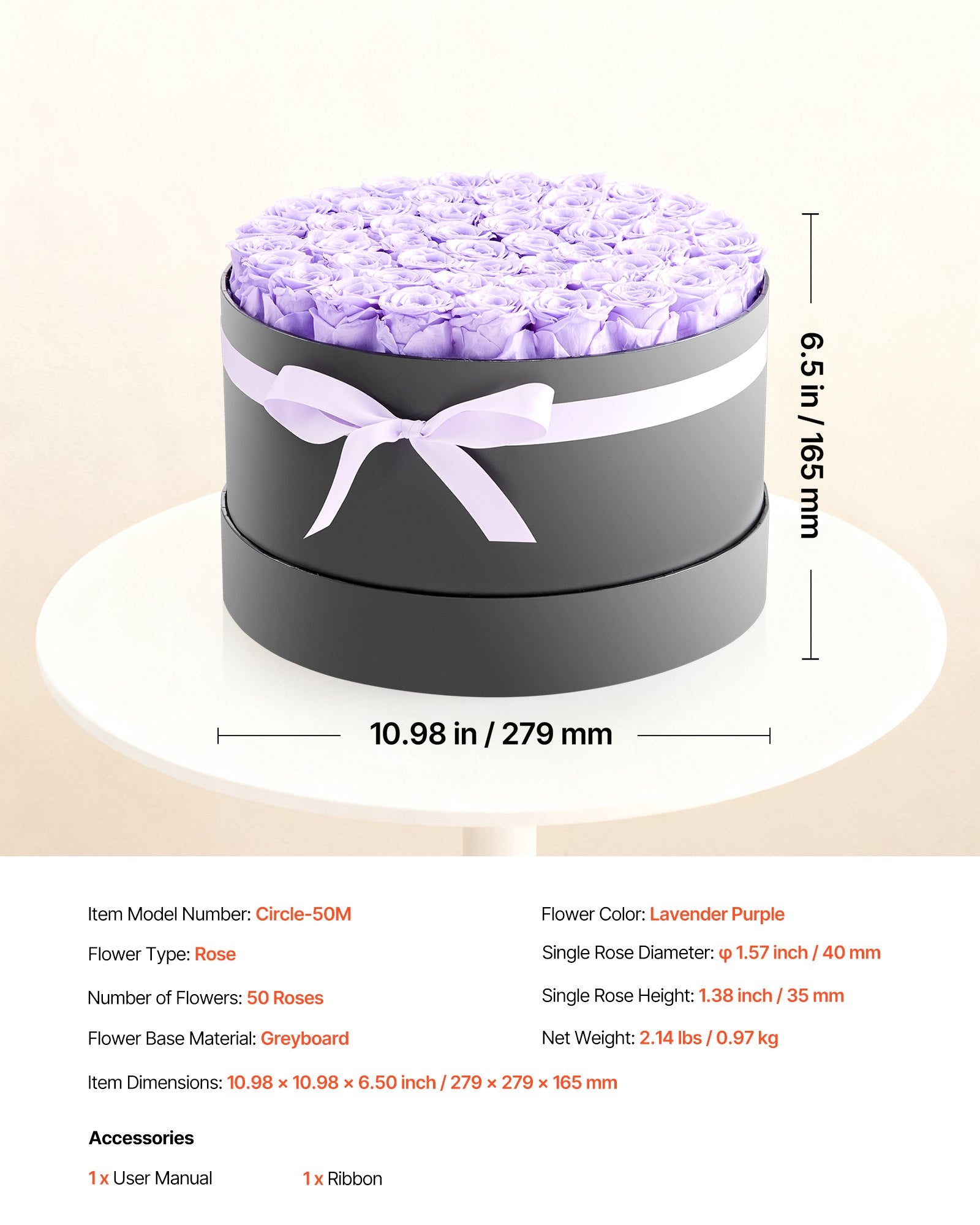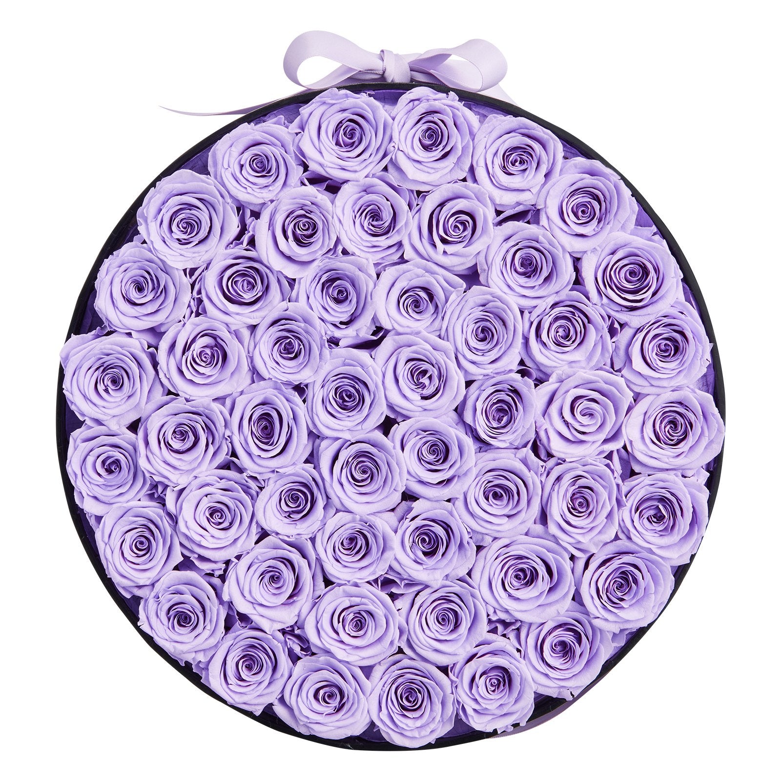 Eviga blommor, 50 konserverade rosor i en låda, eviga blommor, odödlig bukett, födelsedagspresent för kvinnor, hennes fru, mödrar, årsdag, alla hjärtans dag, jul, lavendel lila