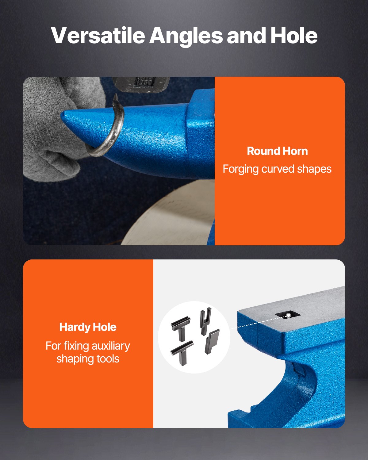 - Hål och horn för olika användningsområden: Smedsstädets runda horn kan användas för plattning, böjning och formning. Och det tåliga hålet visar god prestanda vid stansning och vridning av tillbehör.