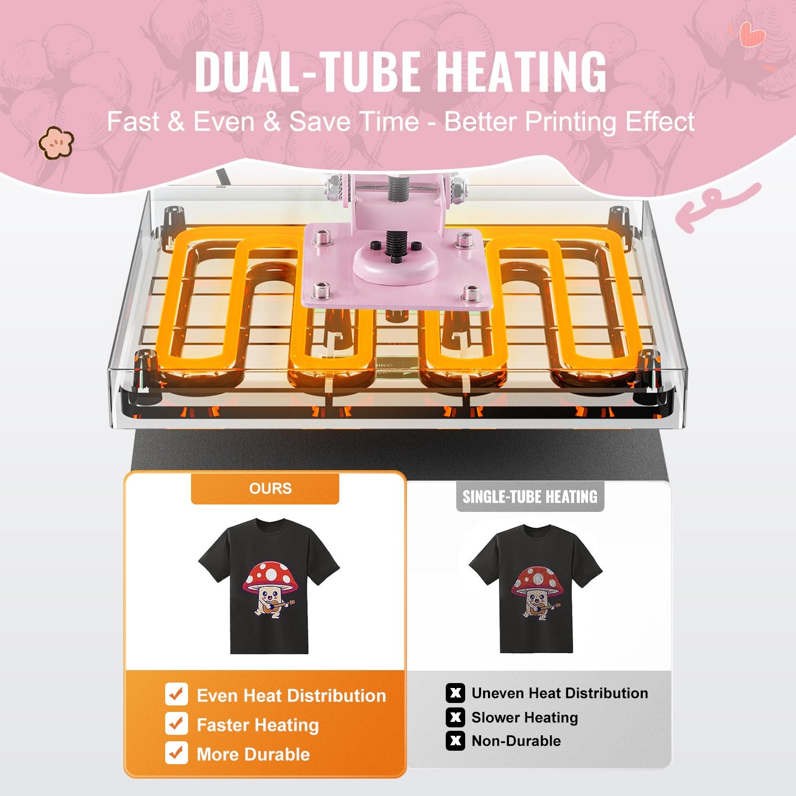 - Enkel användning: Ställ in, tryck och ta bort – slutför överföringsarbetet i enkla steg, även om du är nybörjare. När överföringen är klar gör vår värmeöverföringsmaskins unika utdragbara låddesign att du enkelt kan ta bort den färdiga produkten utan att oroa dig för risken för brännskador.