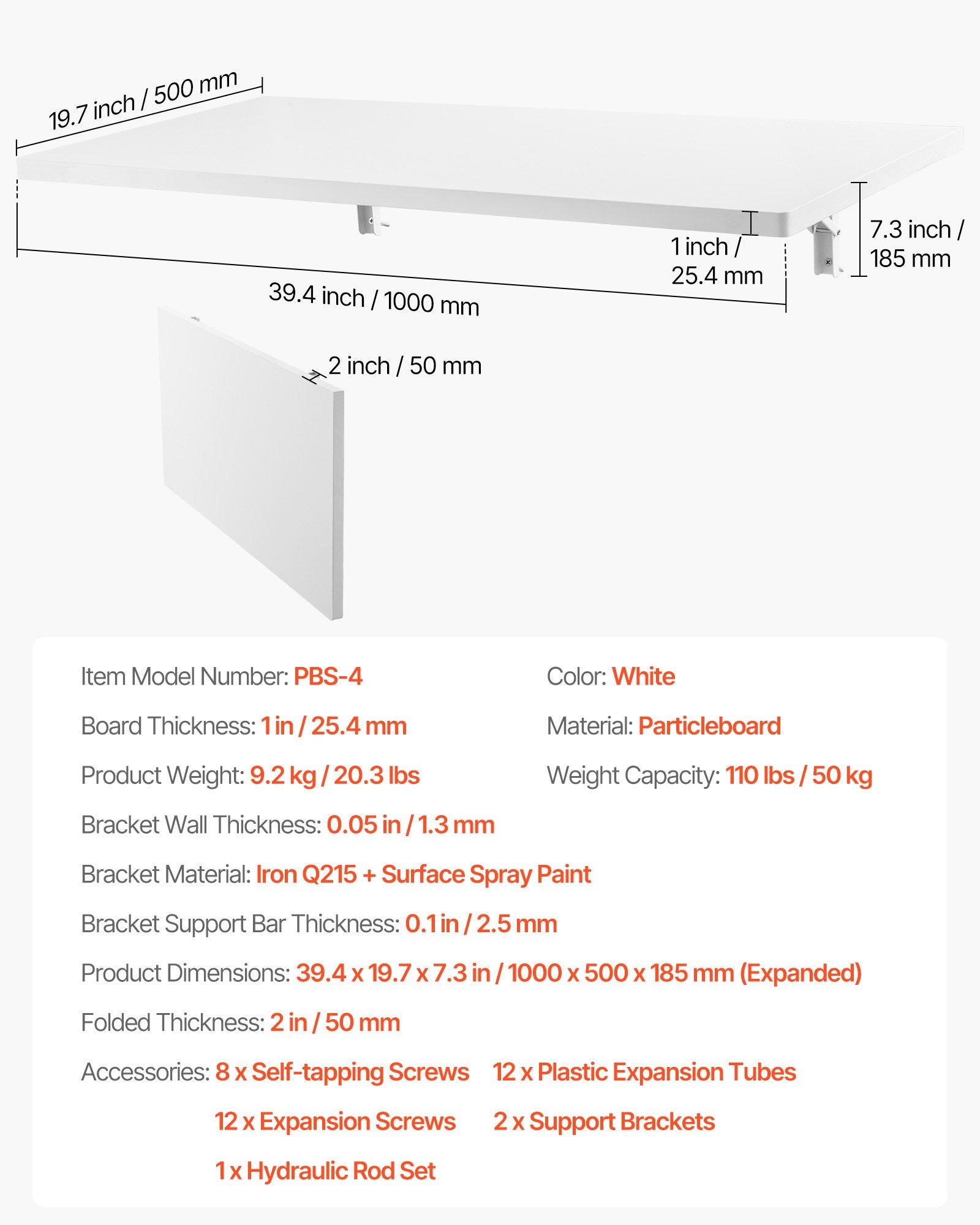 • 45 kg hög lastkapacitet: Trots sin kompakta storlek klarar detta väggmonterade skrivbord upp till 45 kg tack vare sitt tjocka material på 2,5 cm. Det är stabilt för allt från små verktyg, stora verktyg, bärbara datorer och tunga böcker till inredningsföremål, vilket säkerställer att allt står stadigt.