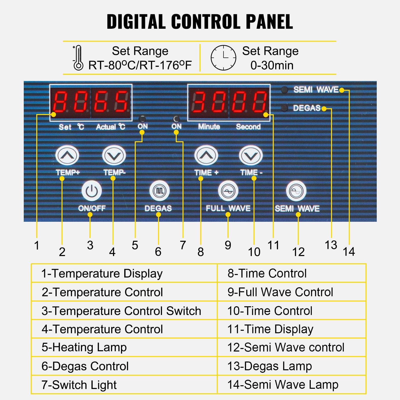 - 【ANVÄNDARVÄNLIG DESIGN】- Ultraljudstvätt för bordsskiva, designad för bättre kundanvändning: bärbart handtag, vattenavloppsanslutning, värmeavledning, halkfria gummifötter, lock och LED-skärm för att visa tid och temperatur i realtid.