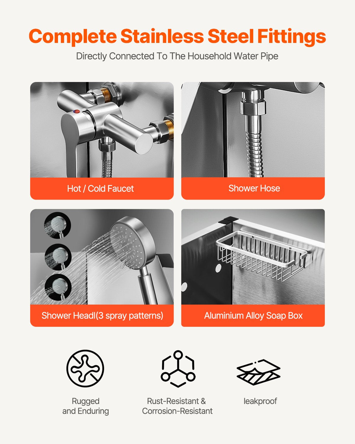 • Integrerad design: Hundbadkaret har varm- och kallvattenkranar, ett duschmunstycke med dubbel kontroll och en tvålhållare, denna design gör det enkelt och effektivt att bada husdjur. PE-vattenfilterplattan ger en halkfri dräneringsyta, medan det medföljande spännet hindrar husdjur från att av misstag öppna luckan under badstunden, vilket håller dem säkert inuti.