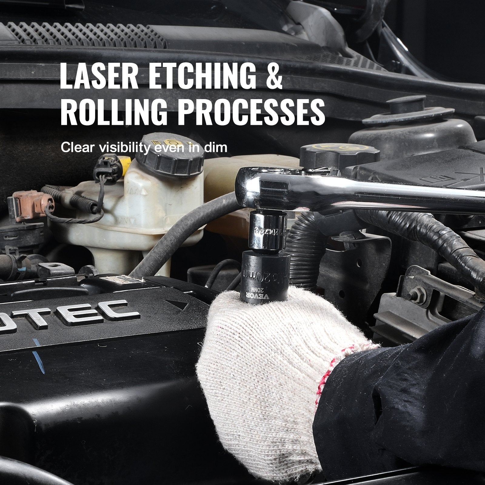 - Lättlästa storleksmarkeringar: Storleksmarkeringarna på denna 14-delade slaghylsnyckelsats är noggrant laseretsade och rullade, vilket säkerställer enkel identifiering av hylsstorlekar även i svagt ljus.