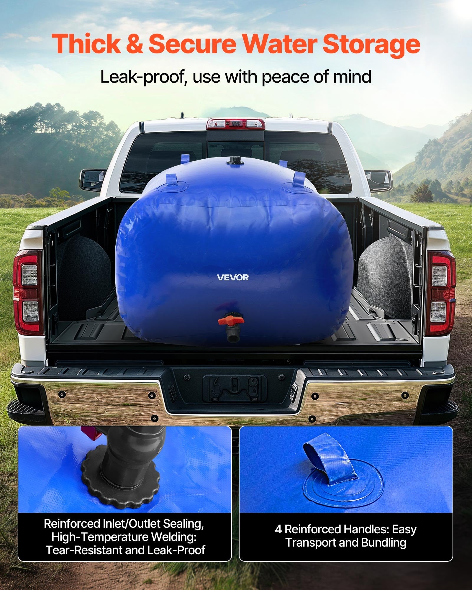- Extra stor kapacitet: Med en extra stor kapacitet på 400 liter är denna VEVOR-vattenbehållare perfekt för hemmabruk, camping, trädgårdsvattning, husbilsinstallationer, torktålighet och nödvattenförsörjning. Hopfällbar och bärbar, enkel att ta med överallt.
