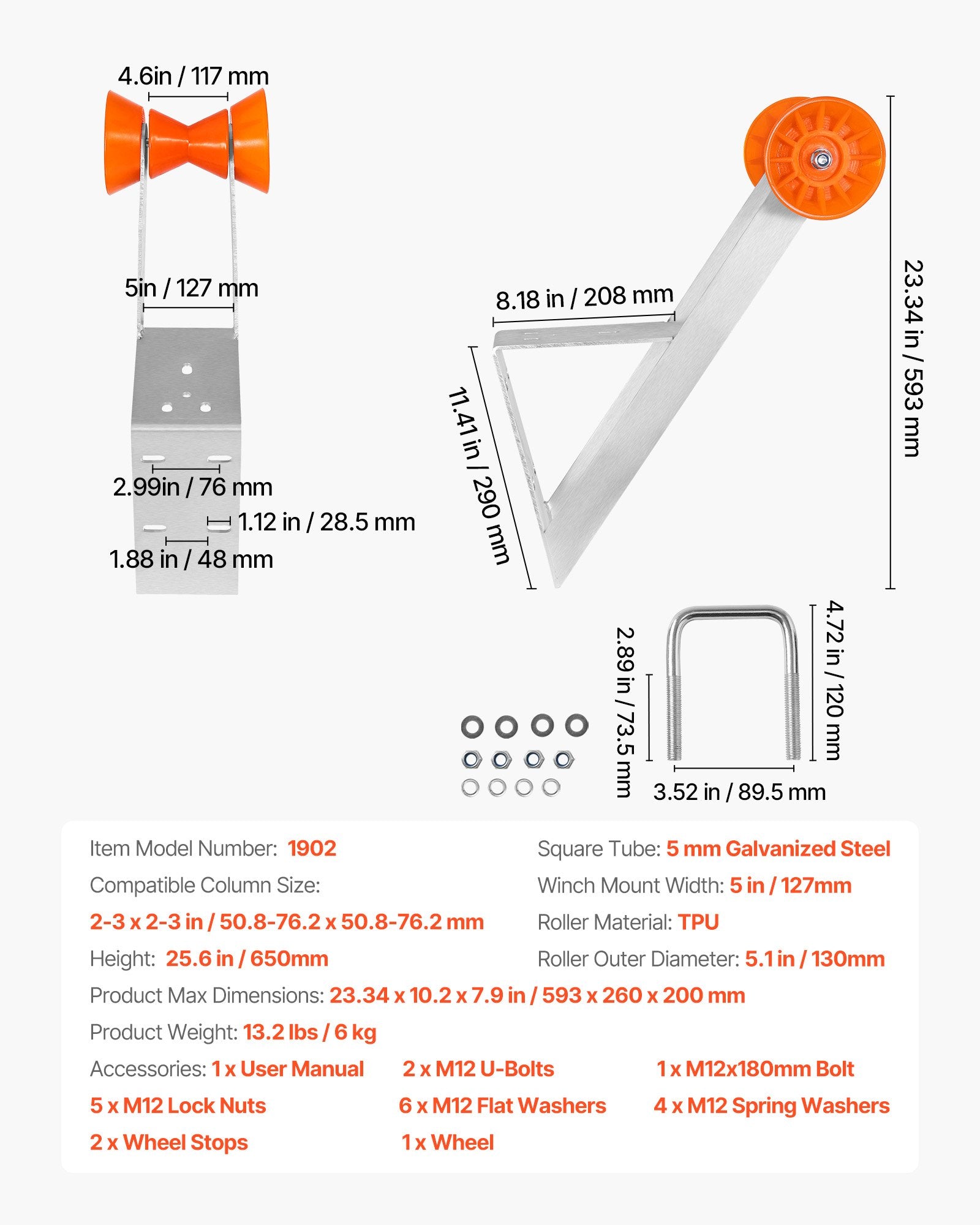 - U-bult ingår: Kompatibel med 2-3'' WX 2-3'' H vinschstolpar, U-bulten låses snabbt på plats för en säker passform. Vinschstativet är enkelt att installera och säkerställer att släpvagnen förblir stabil utan att vingla under transport.