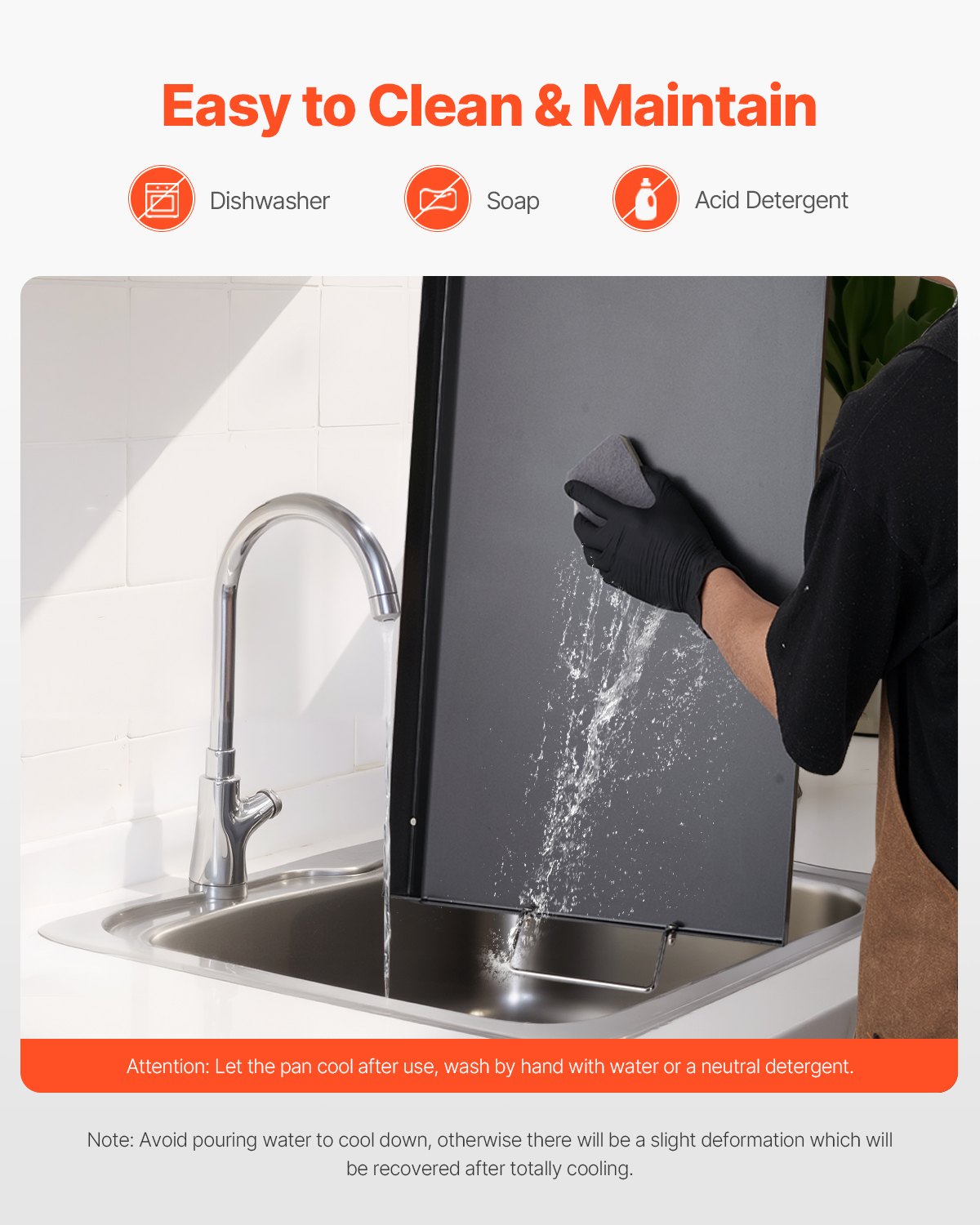 - Kvalitetskolstål: Tillverkad av slitstarkt kolstål, denna stekpanna för gasgrill klarar temperaturer upp till 220 °C, vilket ger dig friheten att laga mat på hög värme. Den nedre x-formade förstärkningen motstår deformation.