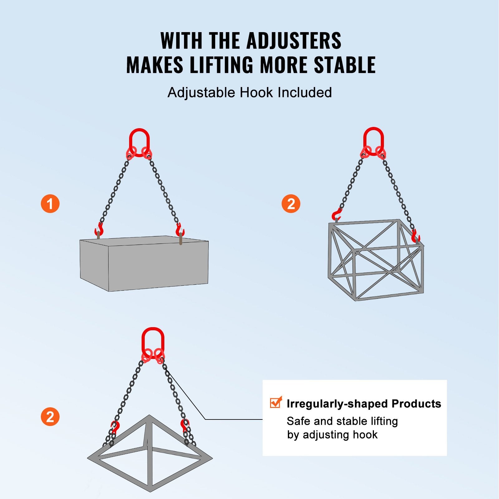 - Kraftig kedja och krokar: Vår kedjeslinga är tillverkad av G80 Mn-stålkedja och krok i legerat stål och har helautomatisk svetsteknik, konstruerad för långvarig användning.