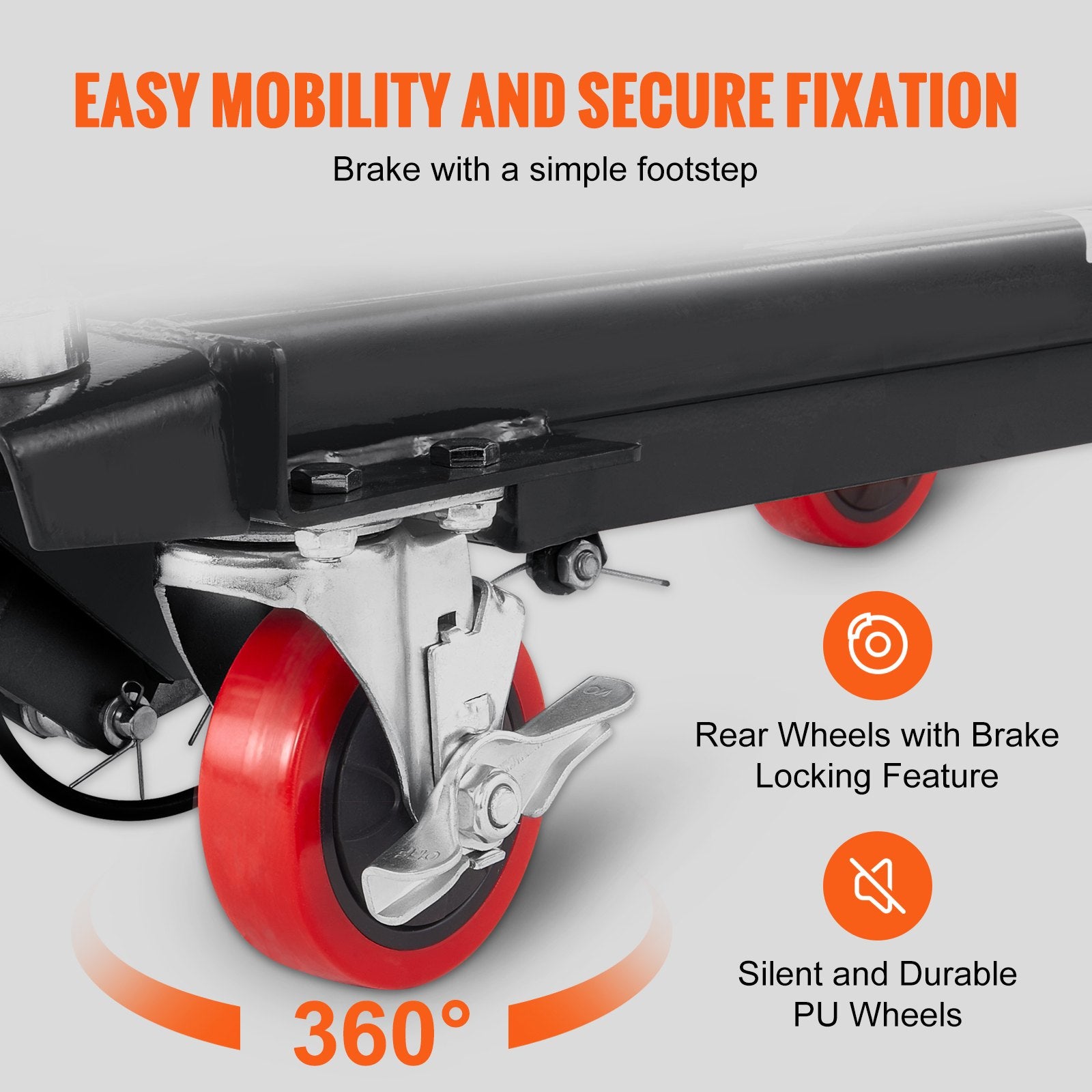 - Premium hydraulpump: Upplev imponerande lyfthöjder upp till 74 cm med VEVOR hydrauliska lyftbordsvagn. Vår högkvalitativa integrerade hydraulpump säkerställer effektiv och pålitlig lyftning utan problem med oljeläckage. Få den kraft du behöver för smidig och kontrollerad lyftprestanda.