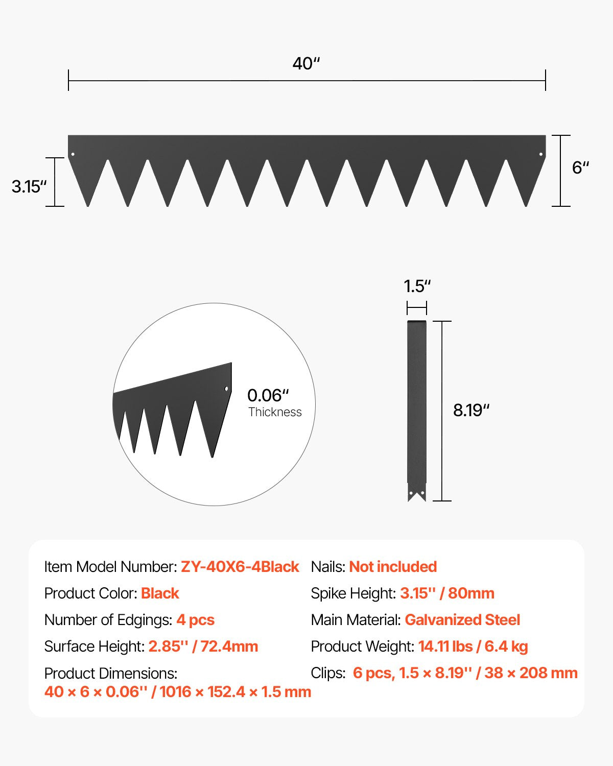 - Vad du får: Setet innehåller 4 metallkantlister, 1 par installationshandskar, 6 klämmor och 1 bruksanvisning. Den förlängda spikdesignen gör det enklare att slå ner delarna i marken, vilket minskar installationsarbetet. Spendera mer tid på att njuta av ditt utomhusutrymme och mindre tid på underhåll!