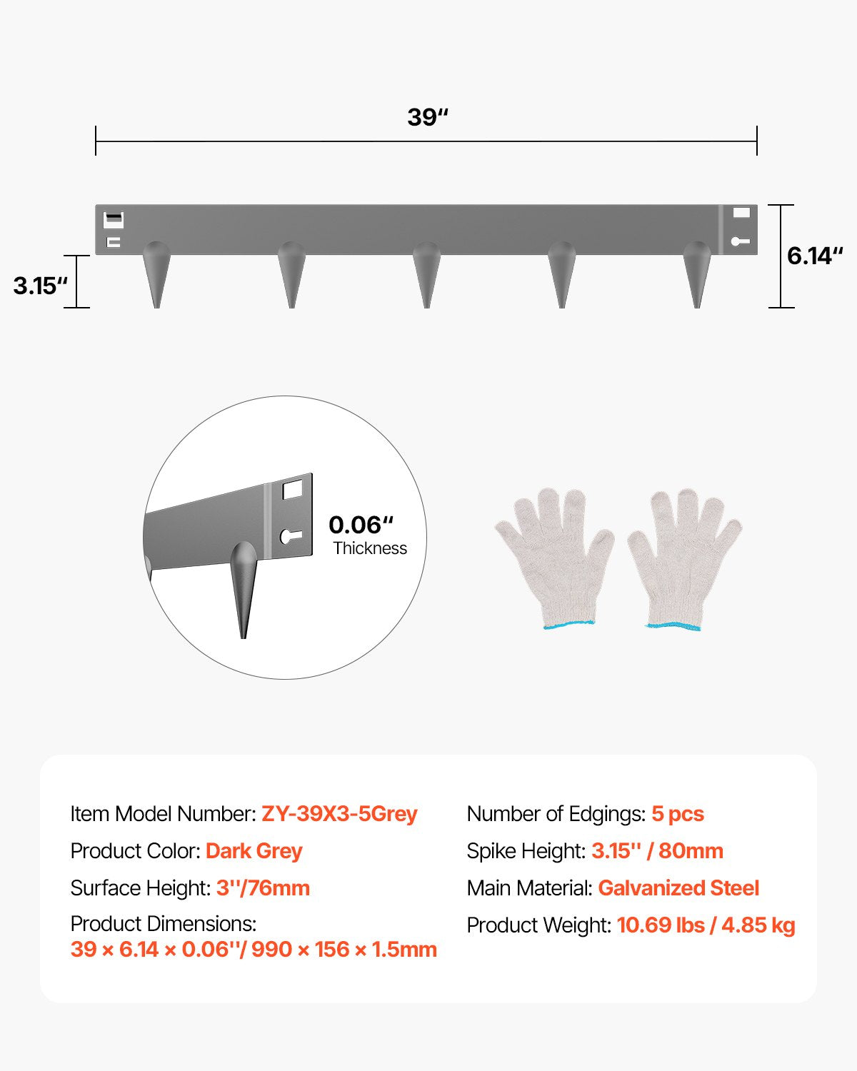 - Vad du får: Varje set innehåller 5 metallrabattkanter för rabatter, 1 par installationshandskar och 1 bruksanvisning. Den förlängda spikiga designen säkerställer enkel installation genom att hjälpa barriären att penetrera marken med mindre ansträngning. Spendera mer tid på att njuta av din trädgård och mindre tid på att underhålla den!