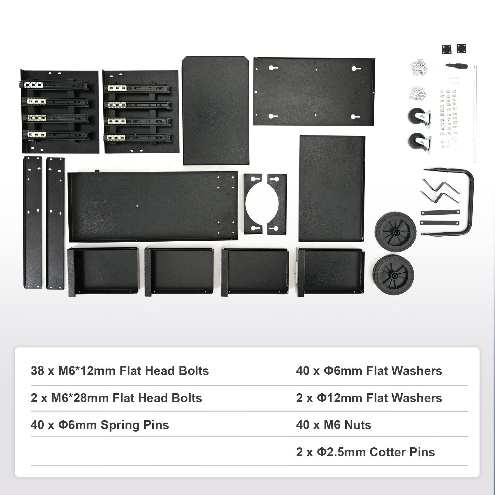 - Din utmärkta förvaringsassistent: Stor MIG-svetsvagn med två våningar rymmer enkelt svetshylsor, svetsmaskiner, gasflaskor, svetspistoler, verktyg och mer, med fyra praktiska lådor för snygg och organiserad förvaring av dina föremål. Två multifunktionella fästen på sidorna kan hålla svetspistoler, svetstänger och andra verktyg. Håll ditt svetsverktyg inom räckhåll och städa upp ditt utrymme med VEVOR.
