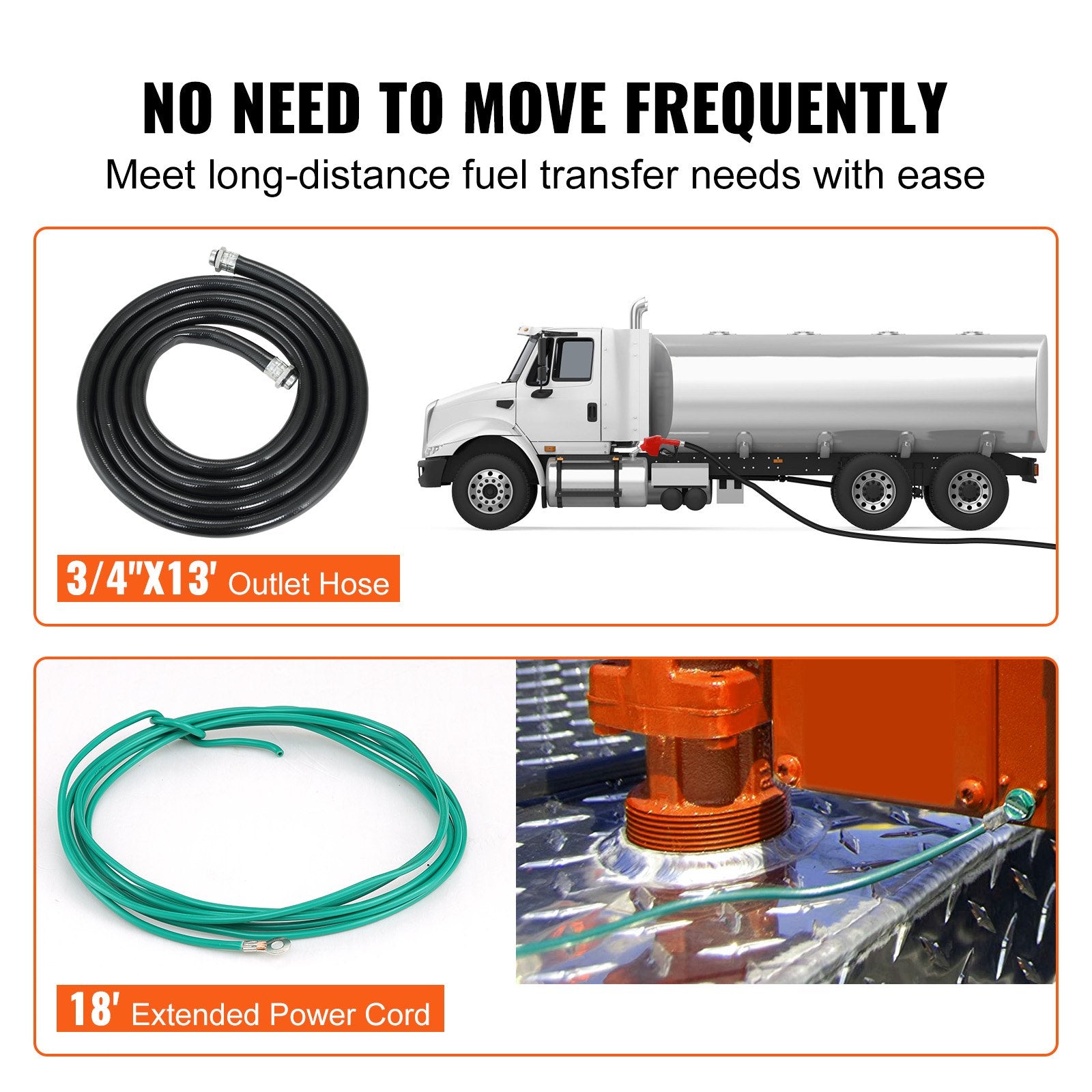 - Effektiv bränsleöverföring: Susa igenom bränsleöverföringar med vår bränsleöverföringspumps 2500 r/min-motor! Med ett snabbt flöde på upp till 16 GPM, en huvudlyft på ≥7,2 m och en sughöjd på ≥9,6 m, kommer du att ha traktortanken full på ungefär 27 sekunder. Den är idealisk för att extrahera bensin, diesel, fotogen, etanol- och metanolblandningar samt biodiesel.
