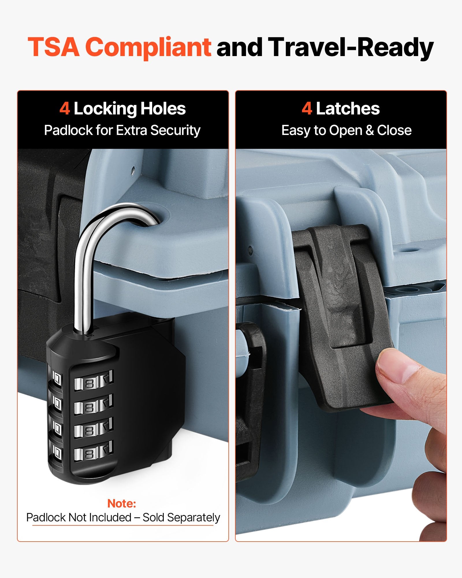 - TSA-kompatibel: Uppfyller TSA-standarder och är lämplig för resor med flygplan, tåg och andra transportmedel. Utrustad med flera spärrar kan du även lägga till hänglås i de inbyggda låshålen för extra säkerhet (Obs: hänglås ingår ej)