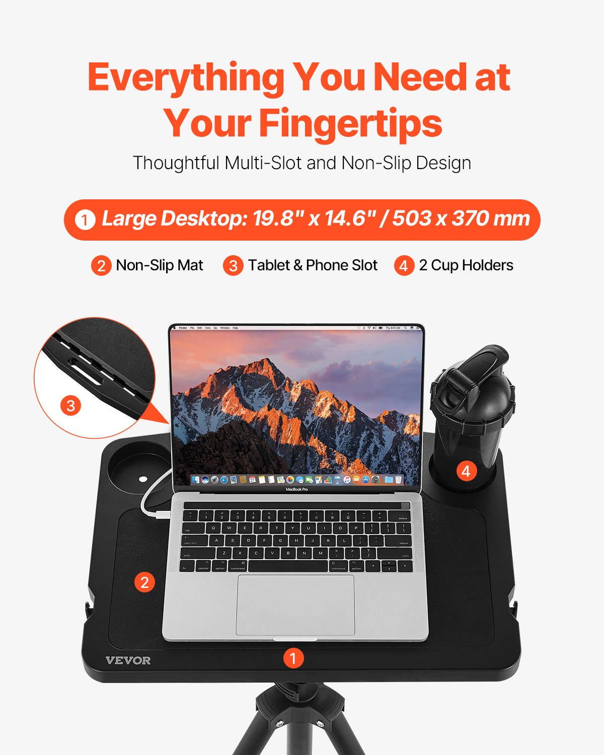 • Mått skrivbord: 19,8" x 14,6" x 1,0" / 503 x 370 x 25 mm