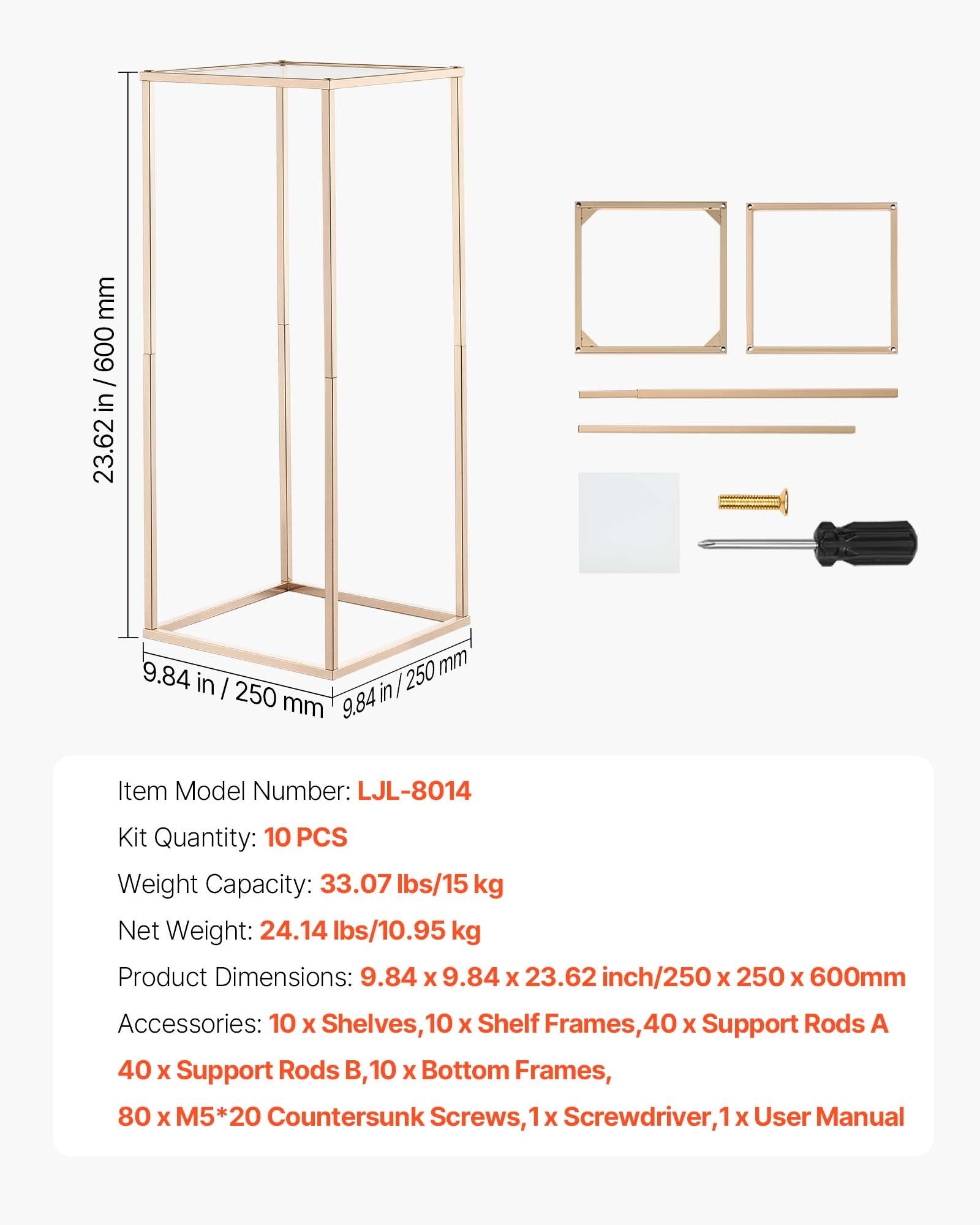 - Stylish Solid Form: Designed with elegance and stability, this gold floral stand uses a rectangular cube shape to evenly distribute weight. Supporting up to 33.07 lbs/15 kg, it accommodates flowers or décor while adding a sophisticated touch to weddings, parties, or festive events
