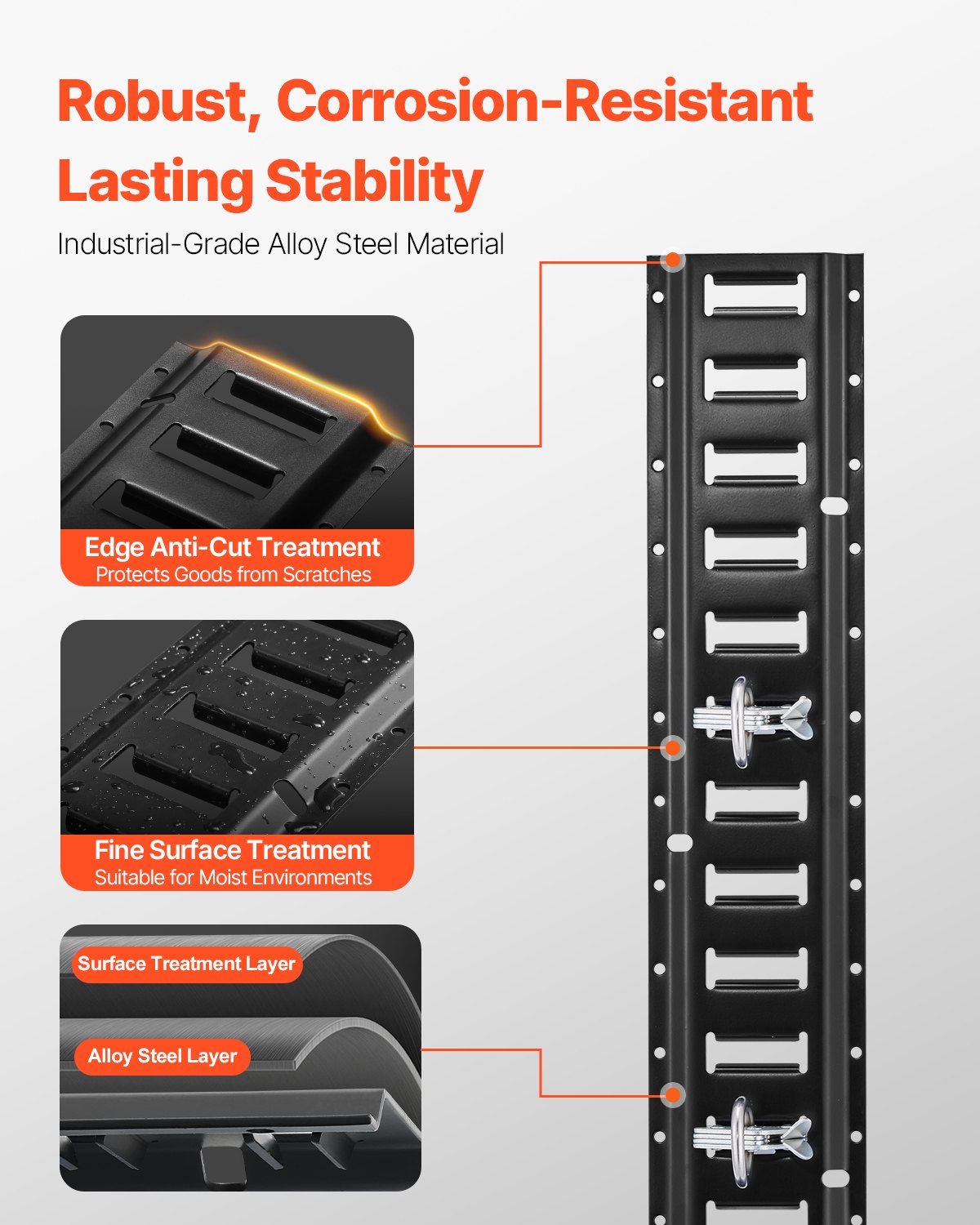 - Robust byggd: Tillverkad av massivt stål av industrikvalitet med en fin pulverlackering, är dessa E-track-förankringsskenor byggda för att hålla. Ingen rost, ingen korrosion – bara pålitlig prestanda. Detta material och denna ytbehandling lovar lång livslängd, även i tuffa, fuktiga miljöer, utan att man behöver oroa sig för kvalitetsproblem.