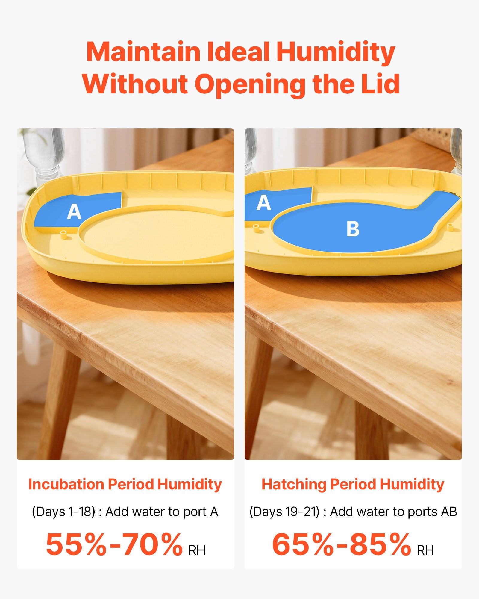 - Digital Display & Precise Control: Our incubator for hatching eggs shows temp-humidity on a screen. With a 68-104°F range, dual-zone auto water refill, and 360° air circulation, it provides accurate condition control and distributes temp-humidity