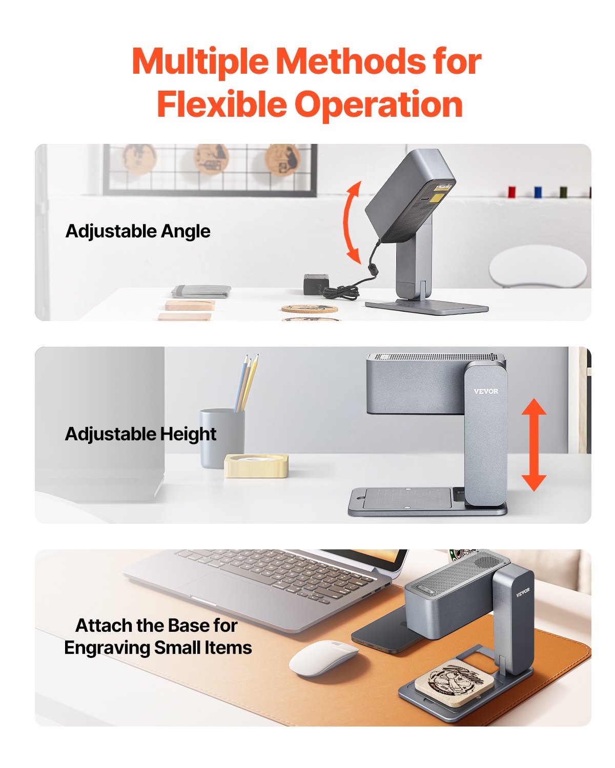 - Flexibel justering: Denna snabba bärbara gravyrmaskin möjliggör justerbar vinkel och höjd. Basen kan tas av för gravering av stora föremål eller fästas för exakt gravering av små föremål. Dess mångsidighet och bekvämlighet passar alla gravyrarbeten.