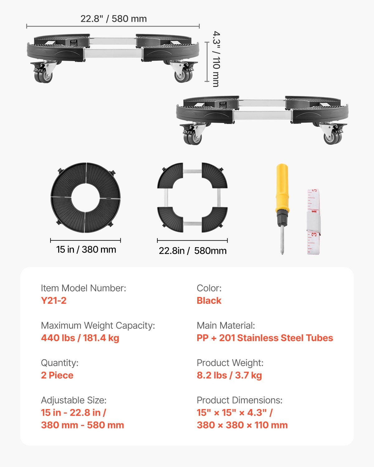 - Flexibel justering: Utrustad med 6 justerbara hål kan den rullande soptunnevagnens storlek enkelt justeras från 380 mm till 580 mm, vilket gör att den passar olika föremålsstorlekar för en personlig upplevelse. Ett mjukt måttband ingår för exakt mätning, vilket möjliggör enkel justering för att passa dina föremål perfekt.