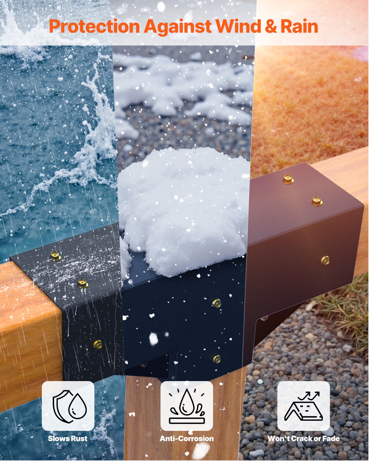 - Byggda för att hålla: Dessa 4x4 pergolafästen är tillverkade av 2 mm tjockt kolstål med en svart pulverlackerad finish som ökar hållbarheten. Den heltäckande designen hjälper till att undvika sprickbildning, skevhet och vattenskador för långsiktig stabilitet.