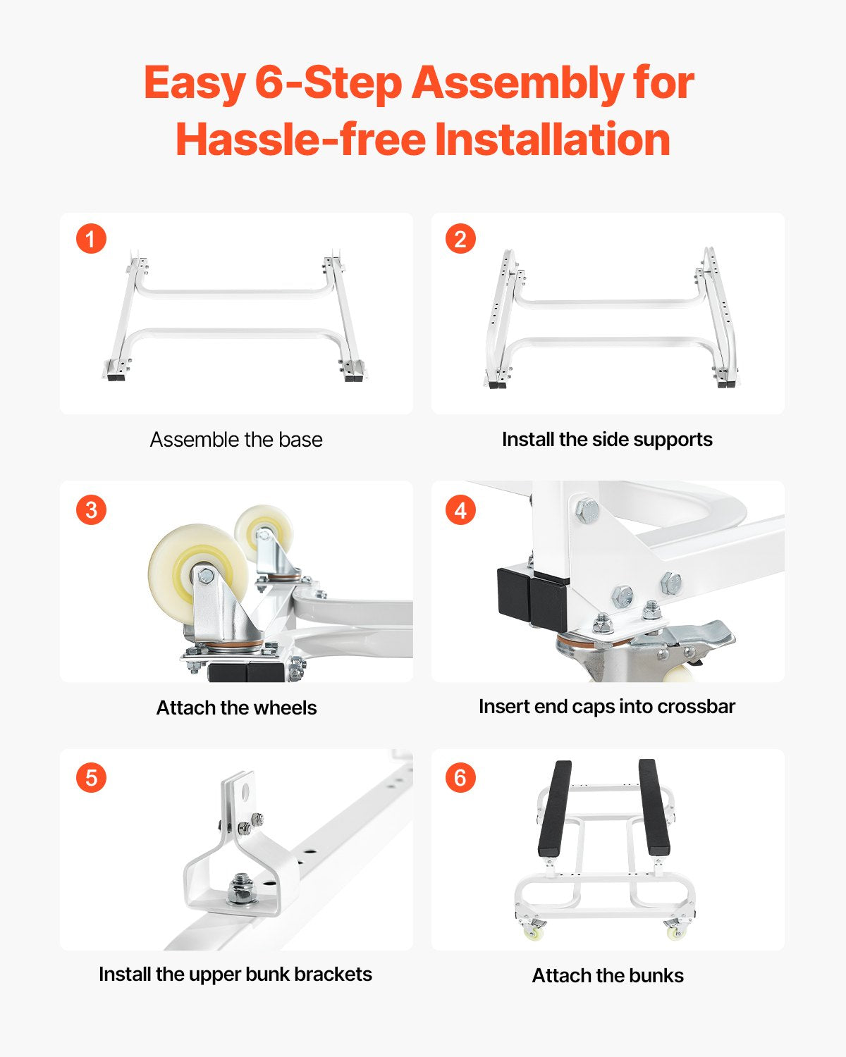 - Kompletta tillbehör: Vårt vattenskotervagnsställ levereras med alla nödvändiga installationstillbehör och detaljerade instruktioner för snabb montering. Efter demontering är vagnen kompakt och platsbesparande, vilket avsevärt minskar förvaringskostnaderna.