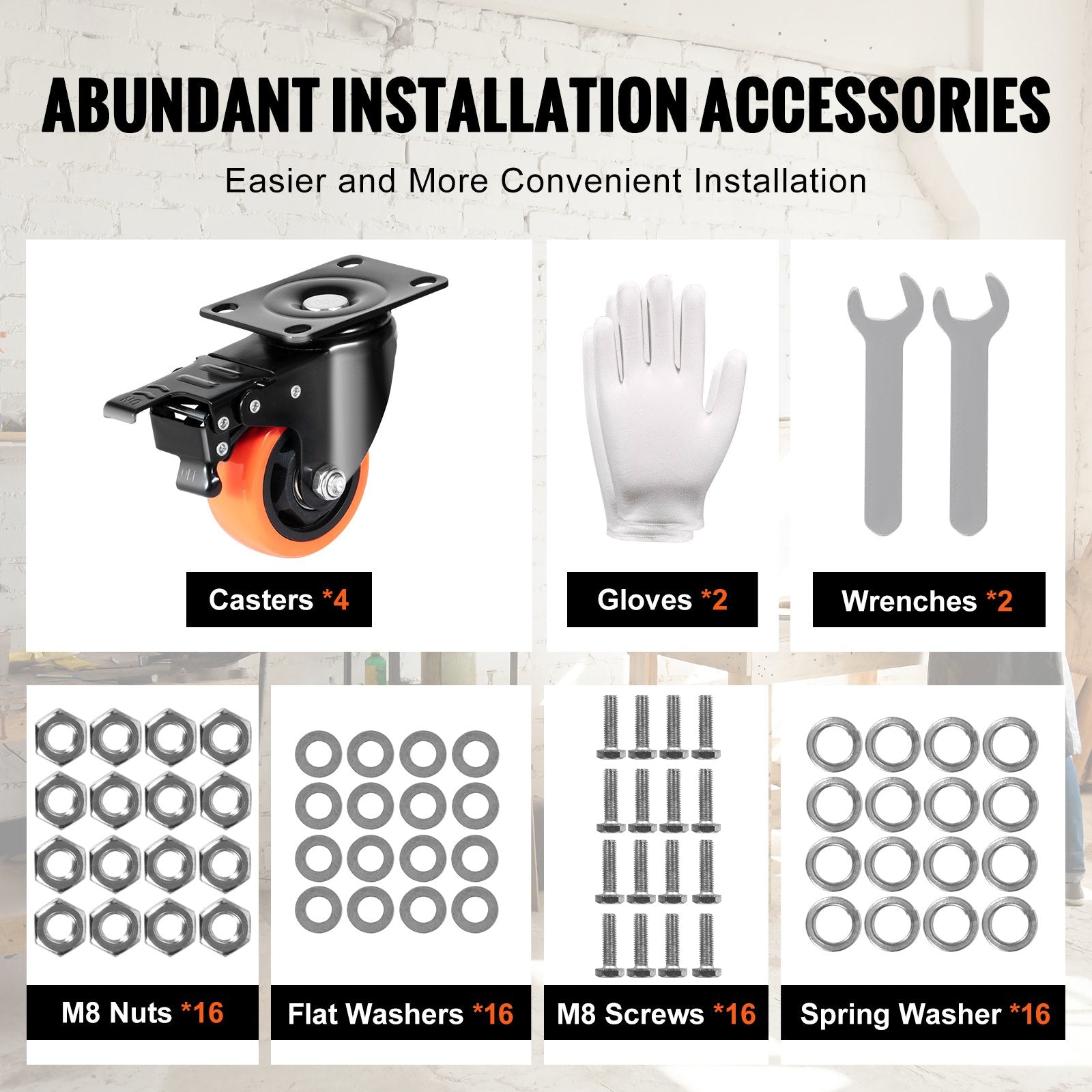 - Byggd som en stridsvagn, utan vikten: Glöm mesiga hjul. Våra kraftiga hjul levereras med ett kraftigt stålfäste. Den förtjockade designen förbättrar deras styrka och hållbarhet ytterligare. Klarar upp till 450 kg med fyra hjul? Javisst!