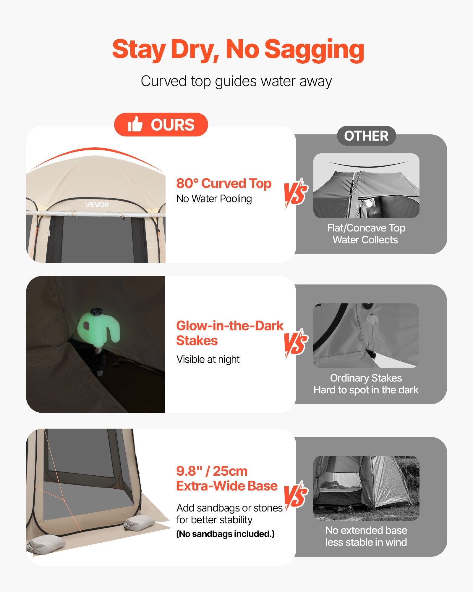 - Stable & Windproof Structure: Reinforced fiberglass and steel poles keep the pop up screen tent upright even in windy conditions. The curved top design avoids water pooling and sagging