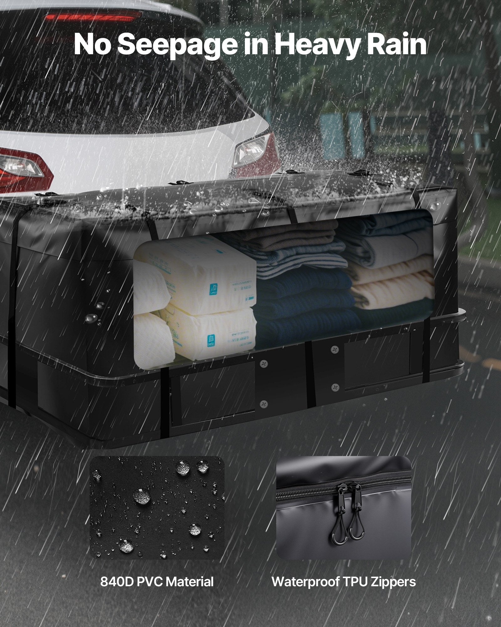 - Lätt och hopfällbar: Med en vikt på endast 2,9 kg fälls denna dragkroksmonterade lastväska snabbt ner till 80 % av sin storlek för enkel förvaring i bilens bagageutrymme eller i ett hörn. Den är bekväm att förvara och komma åt vid behov.