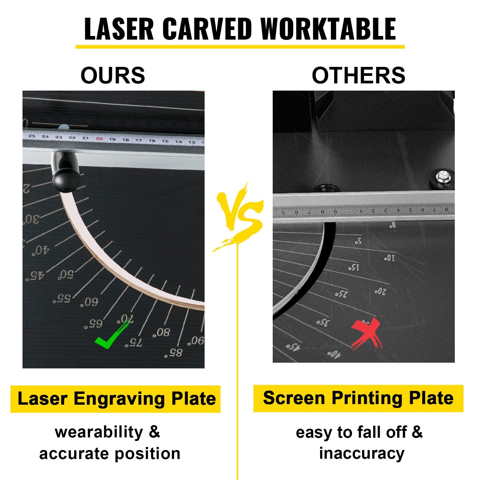 • Lasermärkningsarbetsbänk: Jämfört med andra arbetsbänkar för silkscreentryck använder vår avancerad lasermärkningsteknik. Området där skalan visas har högre nötningsprestanda, vilket gör att du snabbt och exakt kan lokalisera skärvinkeln för att uppnå mer exakt skärning. Och stativet gör att skärmaskinen kan användas på skrivbordet och vertikalt.