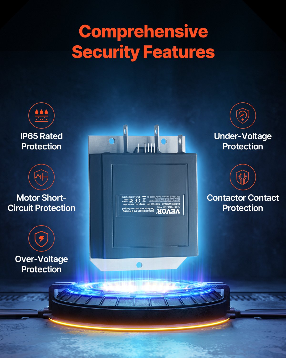 - Allroundskydd: Denna golfbilskontroll har inbyggt skydd mot motorkortslutning, överspänning, underspänning, kontaktorkontakt och temperatur. Vattentätheten är IP65 och passar för tuffa väderförhållanden och krävande miljöer, vilket garanterar säker och pålitlig drift.