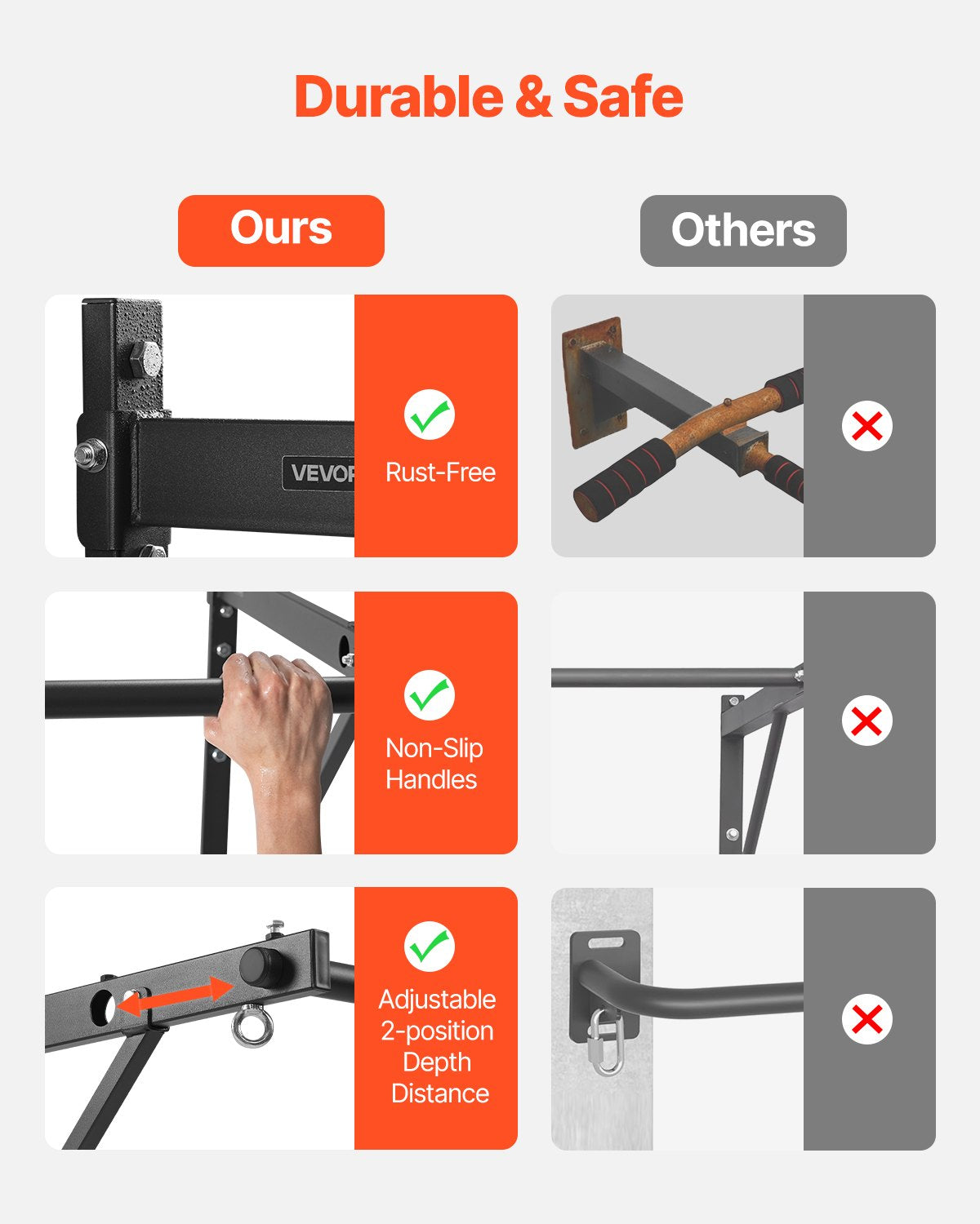 - Dubbla justeringsalternativ: Två djupinställningar (50 cm/76 cm) låter dig växla mellan kompakt förvaring och professionella träningslägen. Använd denna robusta väggmonterade pull-up-stång för att enkelt forma din perfekta kropp.