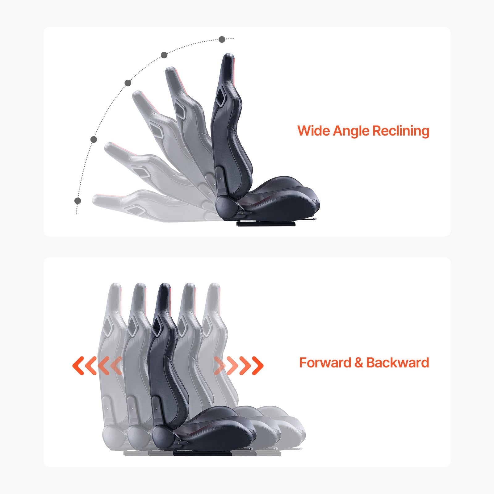 Racingstol, 2-set, justerbar racingcockpit med vidvinkelfällbar lutning och högelastiskt skum, bekväm racingstol med mjukt PVC-läder och Q235B-skjutreglage, lämplig för racingbilar och gokart