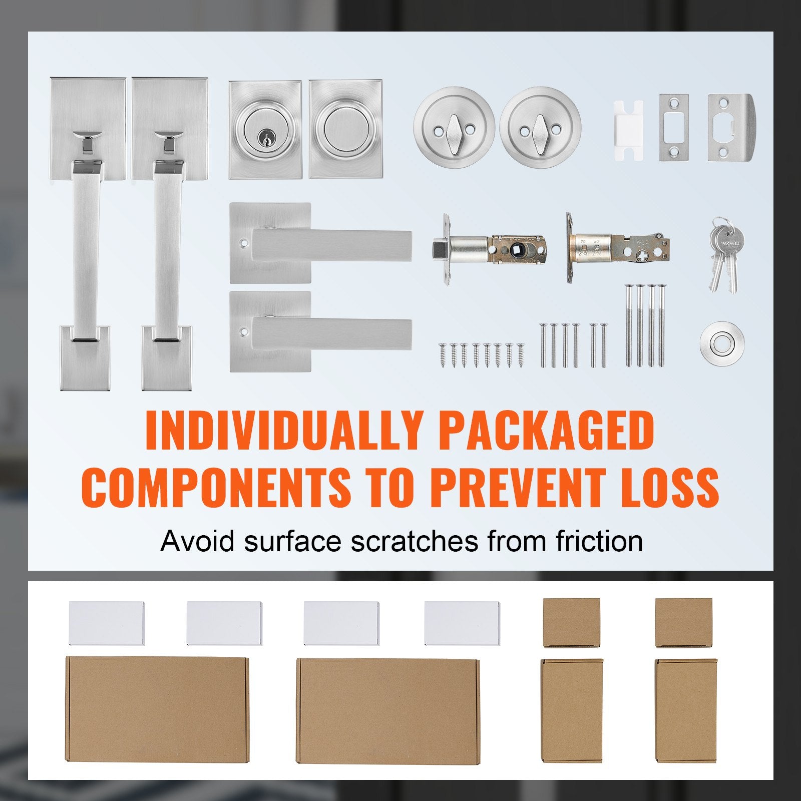 - Robust byggd för lång hållbarhet: Panelen och det inre handtaget är uppgraderade från rostfritt stål till pressgjuten zinklegering, vilket ger en överlägsen textur och hög draghållfasthet. Vårt dubbeldörrlåsset är mycket motståndskraftigt mot rost och korrosion. Det förstärkta vridhandtaget och det uppgraderade spakhandtaget med spårad design förhindrar att handtaget går sönder, vilket säkerställer långvarig hållbarhet.