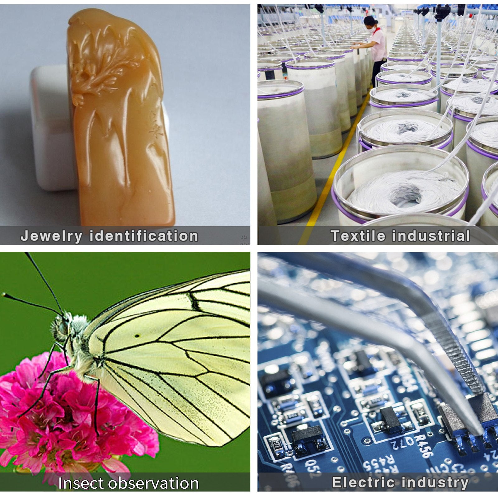 - 【BRED ANVÄNDNINGSOMRÅDE】 - Detta stereozoommikroskop används ofta för att observera insekter, växter, stenar, stämplar, smycken, lödda delar, mikroelektroniska komponenter etc. Det är ett idealiskt verktyg för urmakare, juvelerare, gravörer, stansmakare, filatelister och studenter.