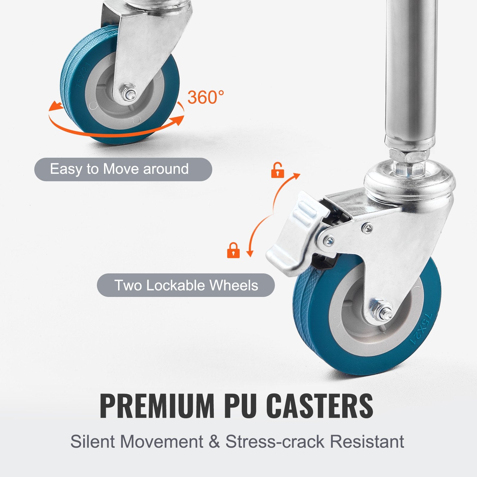 - Fyra universalhjul: Utrustad med fyra 360°-hjul, varav två med fotbromsar, möjliggör denna rullande vagn enkel transport av verktyg eller föremål. Säg adjö till besväret med att flytta tunga föremål.