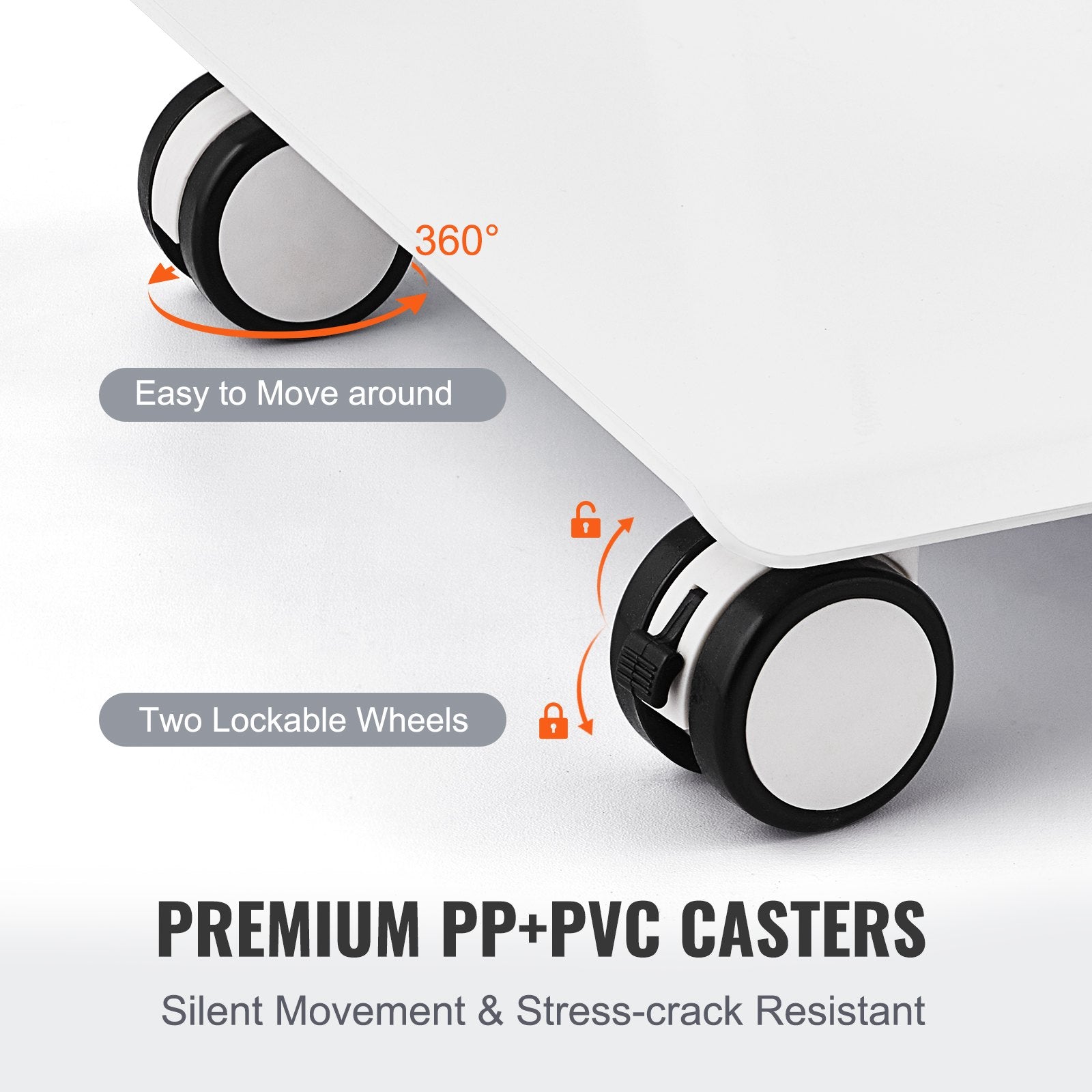 - 360° svängbara hjul: Med fyra svängbara hjul och ett praktiskt handtag kan denna klinikvagn transportera din utrustning snabbt och smidigt. Dessutom håller två låsbara hjul laboratorievagnen stadigt på plats för extra stabilitet.