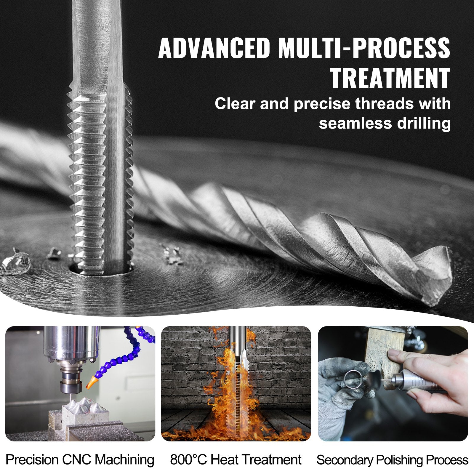 - Oslagbar hållbarhet: Vår gängtapp- och gängverktygssats är tillverkad av högkvalitativt HRC56-härdat lagerstål och hanterar enkelt tunga belastningar och höga tryck. Dess exceptionella slitage- och korrosionsbeständighet gör den till det perfekta valet för att hantera även tuffa arbetsmiljöer.