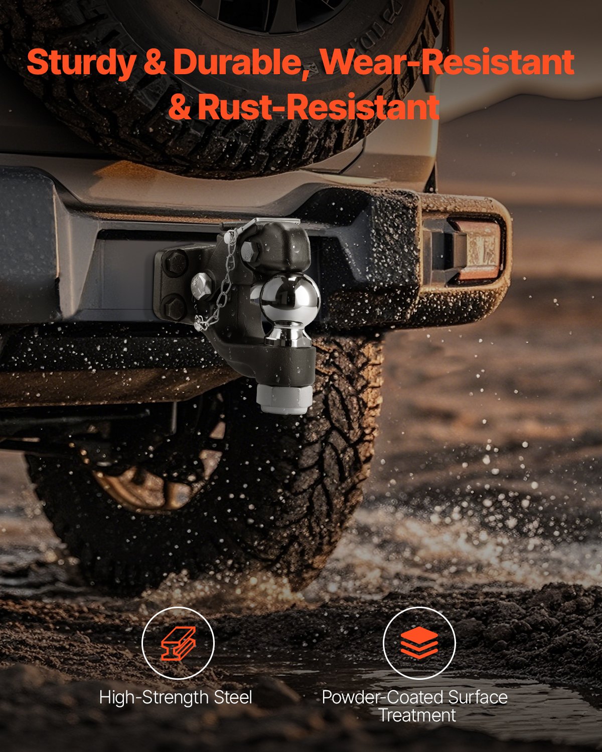 • Hög lastkapacitet: Vårt dragkrok stöder bogseringsvikter på upp till 13 000 kg, med en vertikal lastkapacitet på 2 700 kg. Den har en dragkulstorlek på 6,35 mm och kan anslutas till lunettringar på 6,35–7,5 cm, vilket gör det enkelt att transportera tung utrustning och last.