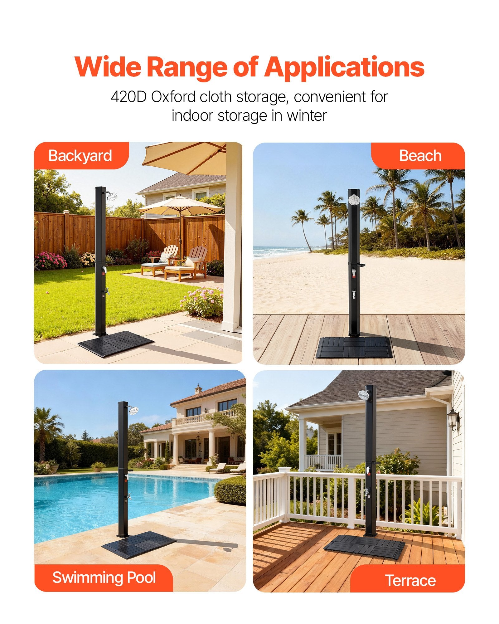 - Enjoy Outdoor Showers: Ideal for rinsing before/after swimming or cooling off on hot days; ideal for backyard, beach, poolside, or patio use; comes with 420D Oxford cover to protect against weather; also suitable for indoor storage during colder months
