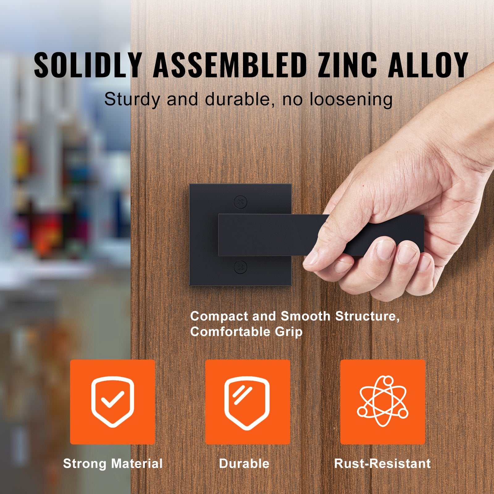 - Slitstarkt zinklegeringsmaterial: Denna svarta dörrhandtag är tillverkad av zinklegering och har en korrosionsbeständig elektropläterad yta, är vattentålig och rostbeständig. Den har en slät yta som är lätt att rengöra, vilket garanterar en längre livslängd. Dess säkra anslutning ger ett bekvämt och sömlöst grepp, vilket förhindrar att handtaget lossnar.