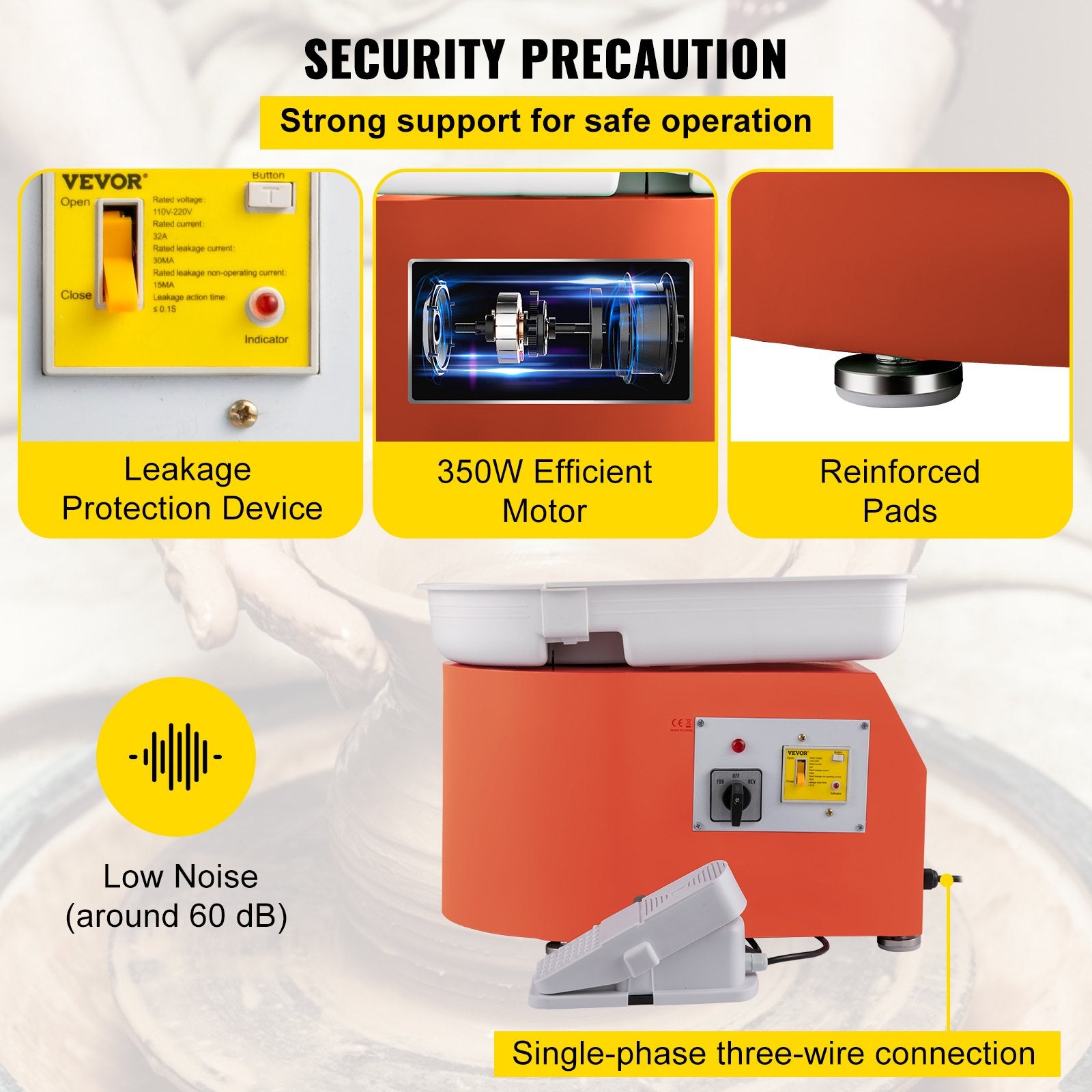 Keramikskiva 27,9 cm 0-300 varv/min keramisk skiva, 350 W justerbar hastighet formningsmaskin med skulpteringsverktyg och förkläde, avtagbar fotpedal för handfat, för konsthantverk och hem-Gör-det-själv, orange