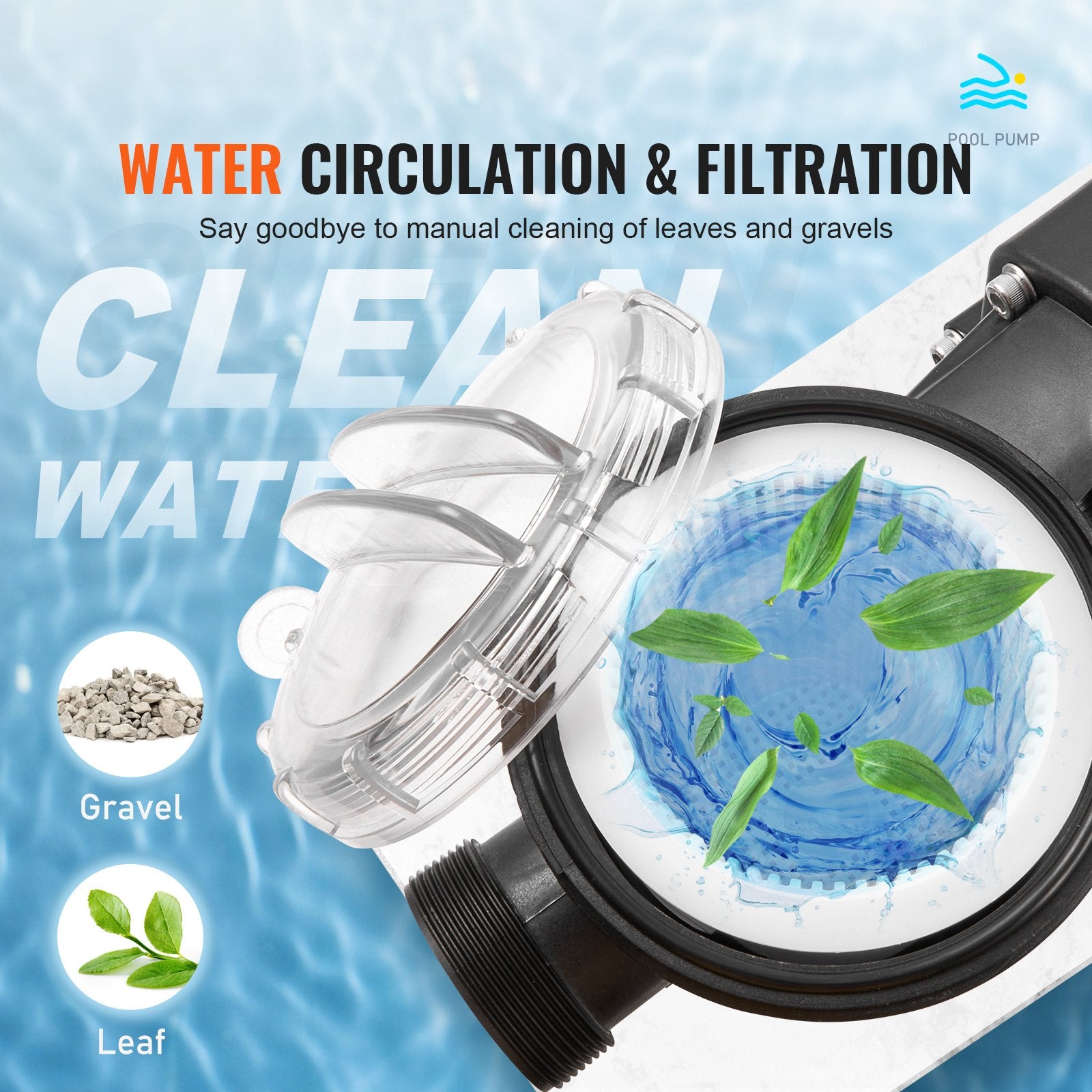 - Effektivt vattencirkulationssystem: Med ett maximalt vattenflöde på 115 GPM och en maximal lyfthöjd på 15 m säkerställer vår poolpump snabb vattencirkulation. Dess avtagbara filterkorg, kompatibel med ett sandfilter (ingår ej), underlättar fysisk rening och håller ditt poolvatten kristallklart. PVC-överdraget gör att du kan övervaka exakt när korgen behöver rengöras. Njut av konsekvent rena poolbottnar varje gång!