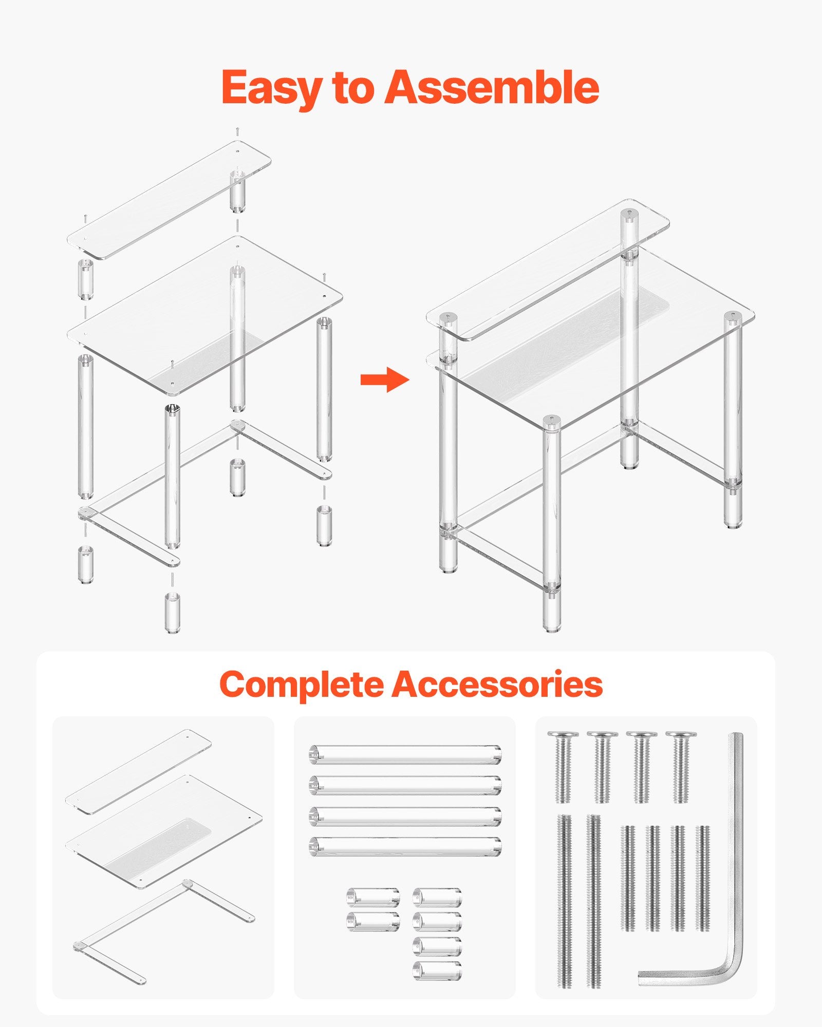 - Rymlig förvaring: Den transparenta bordsskivan på detta sidobord i akryl ger en bekväm höjd och vertikalt utrymme i två nivåer för bärbara datorer, böcker och dekorationer. Det ger gott om utrymme för arbete och studier, medan den genomskinliga ytan gör det enkelt att hitta saker.