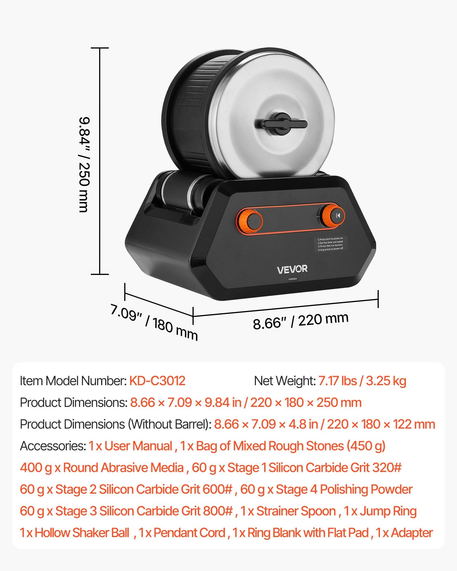 - Hög lastkapacitet: Denna stenpolerare har en 1,4 kg tunglastcylinder som rymmer fler stenar samtidigt, vilket avsevärt förbättrar poleringseffektiviteten. Den stora kapaciteten sparar tid, säkerställer jämn polering och minskar frekventa påfyllningar för enklare användning.
