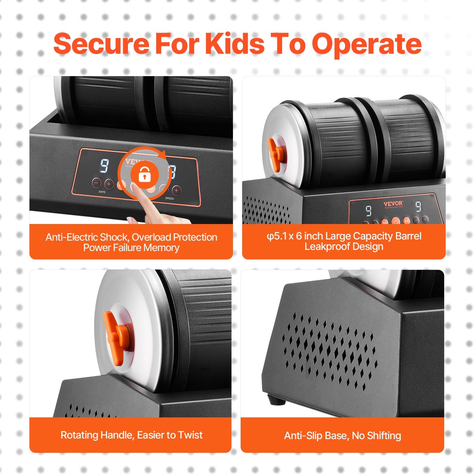 - Uppgraderad 9-hastighetskontroll: Denna stenpoleringsmaskin har en lättanvänd manöverpanel som låter dig välja mellan 1–9 hastigheter och en timer på 1–9 dagar. Oavsett om du är en 8-årig nybörjare eller en stensamlarentusiast, kommer du att njuta av att enkelt polera ädelstenar för att skapa hantverk som kan jämföras med en mästares.