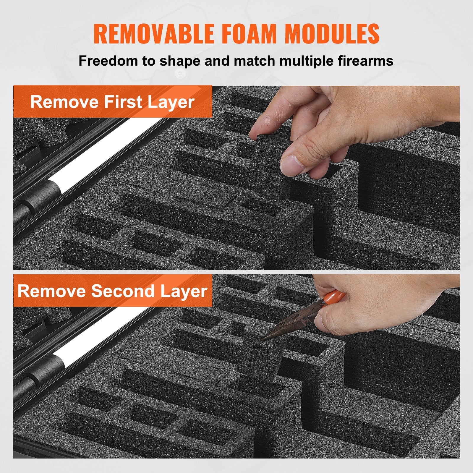 - Mångsidig XPE-modul: För att säkerställa exakt passform med pistoler i olika storlekar har vi integrerat höjd- och längdjusterbara XPE-moduler. Denna funktion säkerställer att även de minsta pistolerna får plats precis som fullstora, vilket gör den perfekt för förvaring av de flesta pistolmodeller och tillbehör som skyddsglasögon, hölster, handskar och ammunition, och erbjuder en idealisk förvarings- och reselösning.