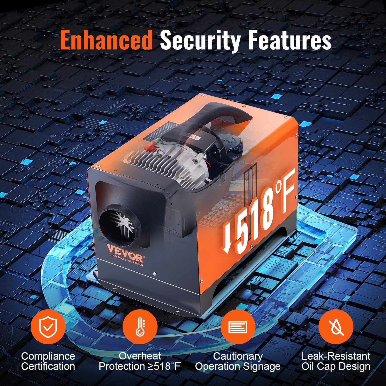 - Säker och pålitlig: Vår dieselluftvärmare har ett högt säkerhetssystem som möjliggör bekymmersfri användning i olika miljöer som bilar, husbilar och fartyg. Den erbjuder konstant temperaturkontroll, tidsfunktion, röststyrning, förvärmning och överhettningsskydd vid ≥518°F/270°C, vilket garanterar en säker och bekväm upplevelse hela natten.